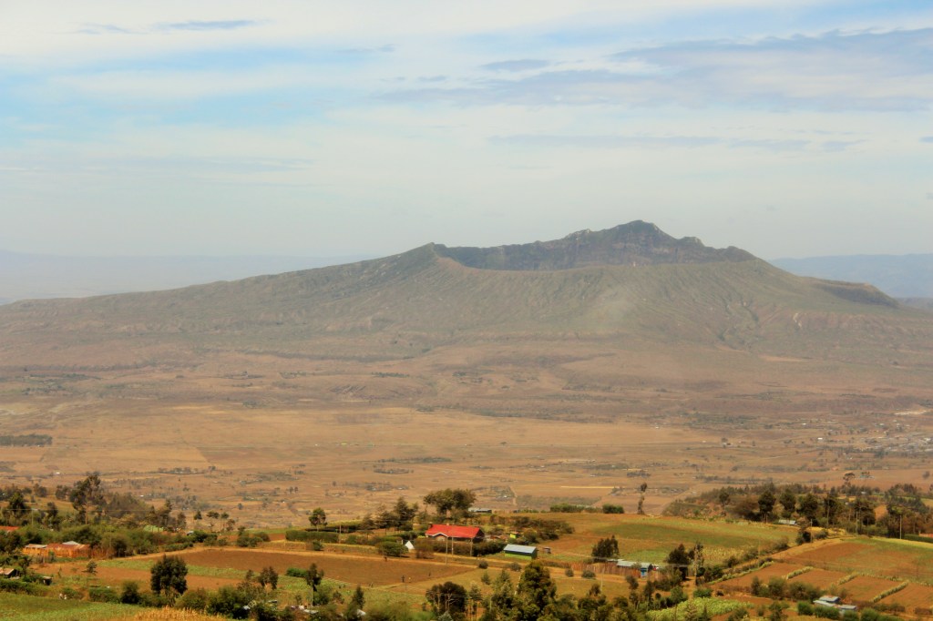 We started from a high plateau at about 8,500ft which could have been anywhere in Scotland or Wales and climbed up through very English type woodland; at about 9,000ft we reached the bamboo level and then it became very African. We were accompanied by a dozen or so little boys who rushed ahead clearing a path for us. At about 9,500ft we came to giant heather about 5ft high and little stunted trees hung with festoons of lichen. The clouds began to come down so we went back down after that but found it an interesting walk. We hope to do a bit of climbing so that we will be fit enough to climb Mt Kenya later on. We stopped at the village for a little while – the children there had hardly seen a white face and were fascinated and terrified at the same time – Graham played a pretend catching game with them and you could have heard the squeals miles away, but they kept coming back for more. This area was European farmed until Independence and now it is settled by previously landless people who farm the area as a co-operative. We were shown the pyrethrum (the main crop at this altitude) drier and tank for keeping milk cool. These things were as primitive as could be but perfectly effective for their purposes and were used and looked after by the 150 farmers in the co-operative. The big European house had been turned into District Offices – the Head Man has a tiny stone-built hut and the rest live in the round mud and thatch huts they are used to. We drove back on a new road with a tarmac surface with magnificent views over the Rift Valley and Suswa and Longonot, two volcanic craters which lie in the valley.