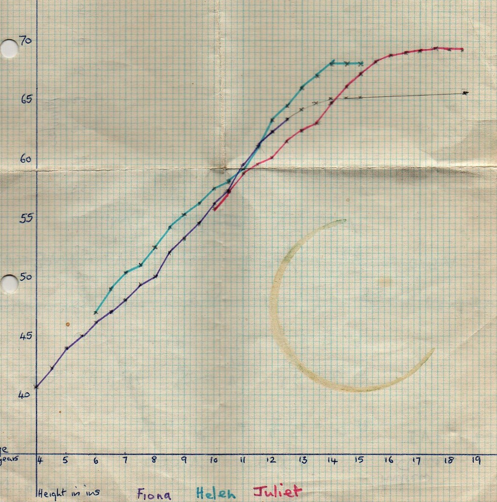 We had our half-yearly measuring yesterday and found Juliet has grown two and a half inches since July – she is now barely an inch shorter than me – no wonder she’s grown out of all her clothes. Helen still shows signs of being the tallest – she is as tall now as Juliet was at one year older.