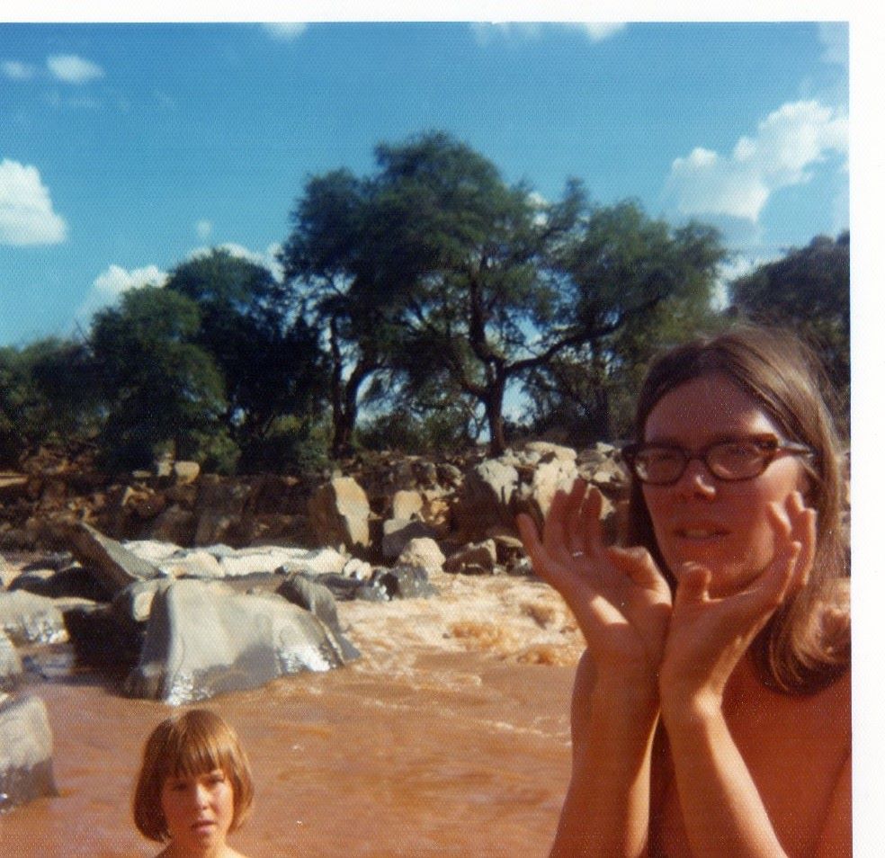 Although neither Juliet nor Judy mention it in their writing, Helen & Juliet remember there being a plan after lunch for them to walk back down the track towards the ‘main road’ to leave a sign saying ‘please help’ but not actually getting far out of sight of the minibus before getting spooked and running back! Judy remembers that she wasn’t cross about this failure, but that she then took the note and left it at the big (not very!) road. Judy says ‘I remember vividly walking the 1/4 mile or so through the bush. I knew logically the danger from animals was remote but in all that immensity of space and quiet I felt very small and alone. It was still there when we left the next morning. No one had passed as we could tell from lack of tyre marks. Another thing I remember is Juliet and I working out a system whereby we could filter the river water through a cloth (handkerchief/pillowcase, can’t remember) if we were still stuck after our drinking water ran out. We had plenty of food but water would soon be a problem. Fortunately we didn’t need to put the plan into action as a fresh approach to the stuck van the next morning soon solved the problem.