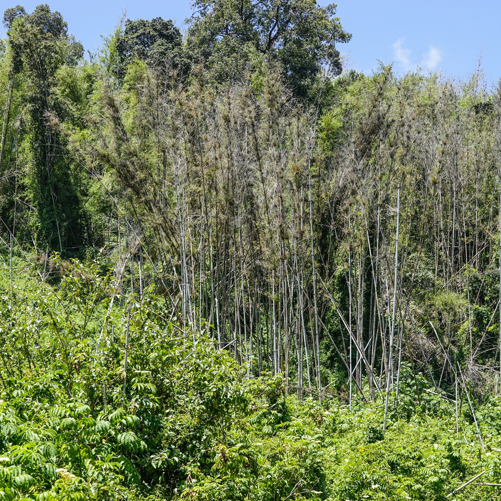 On the weekend of 14-15 Feb we went camping on the Aberdares, a range of mountains not far from Mt Kenya. On the Sunday we walked to the top. It was a long hot walk through a dense bamboo jungle on a very churned up ELEPHANT path. It was quite scary because there was fresh dung and great big footprints but all went well and we reached the top without meeting any elephants or buffalo.
