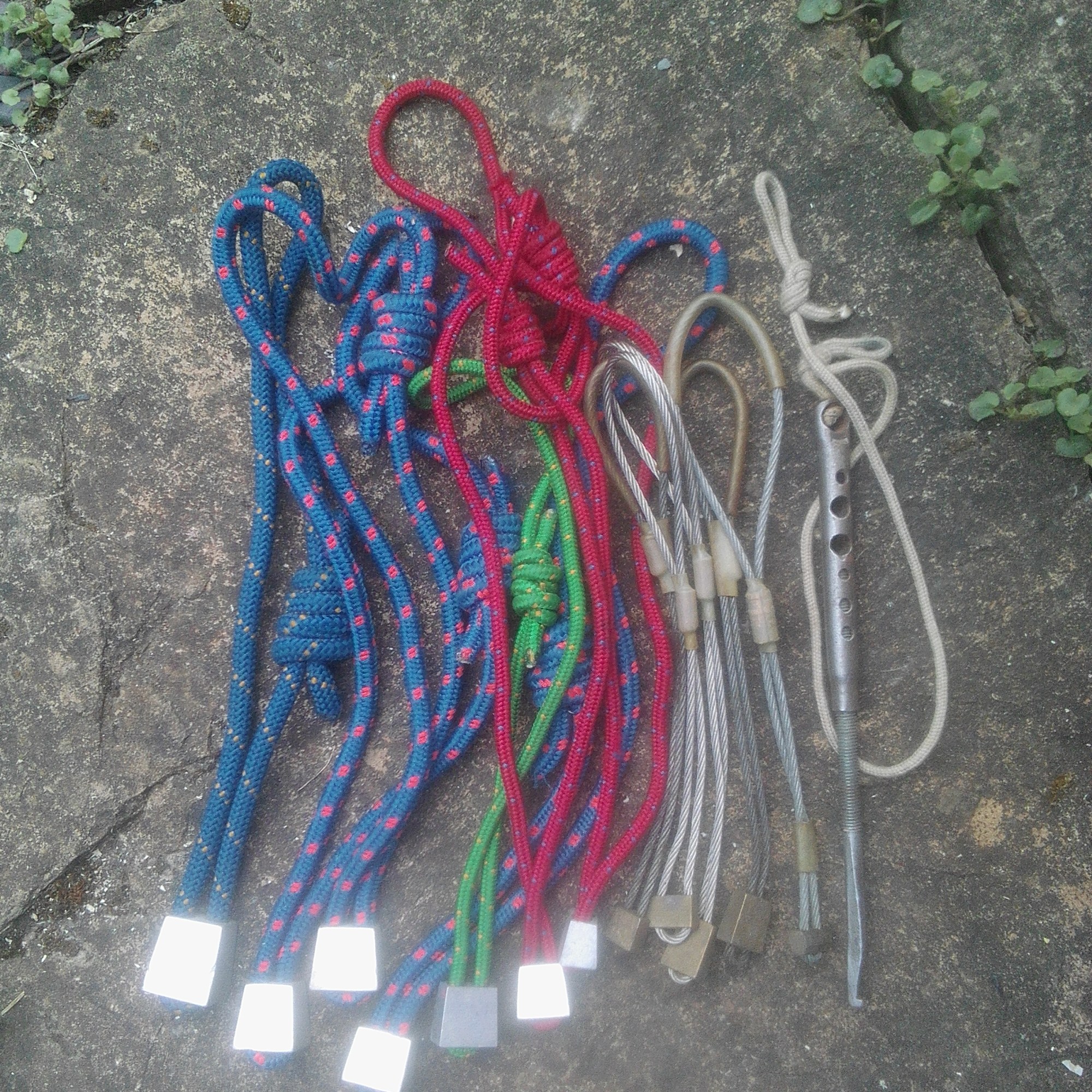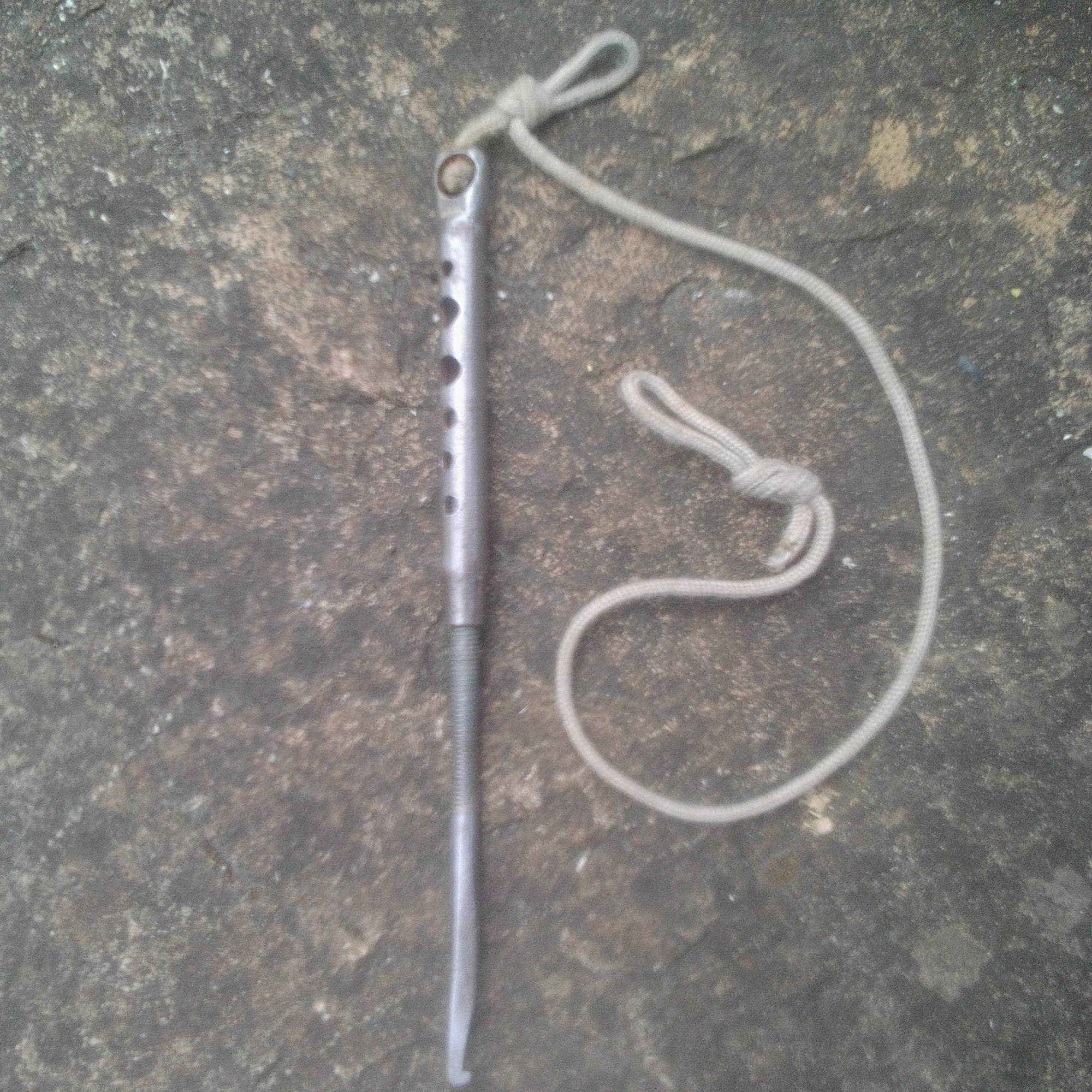 Nuts made by Graham which he still has in 2020. He says “The nut removing tool was a completely new design which used an adjusting screw mechanism which I found at the scrap metal yard where I bought bits of aluminium alloy tubing from aircraft landing wheel assemblies. No-one else had invented a nut removing tool. Ian Howell took mine back to the UK to show people in climbing gear shops and they expressed interest. Later someone made simple tools for sale but nothing extendable like my version.”