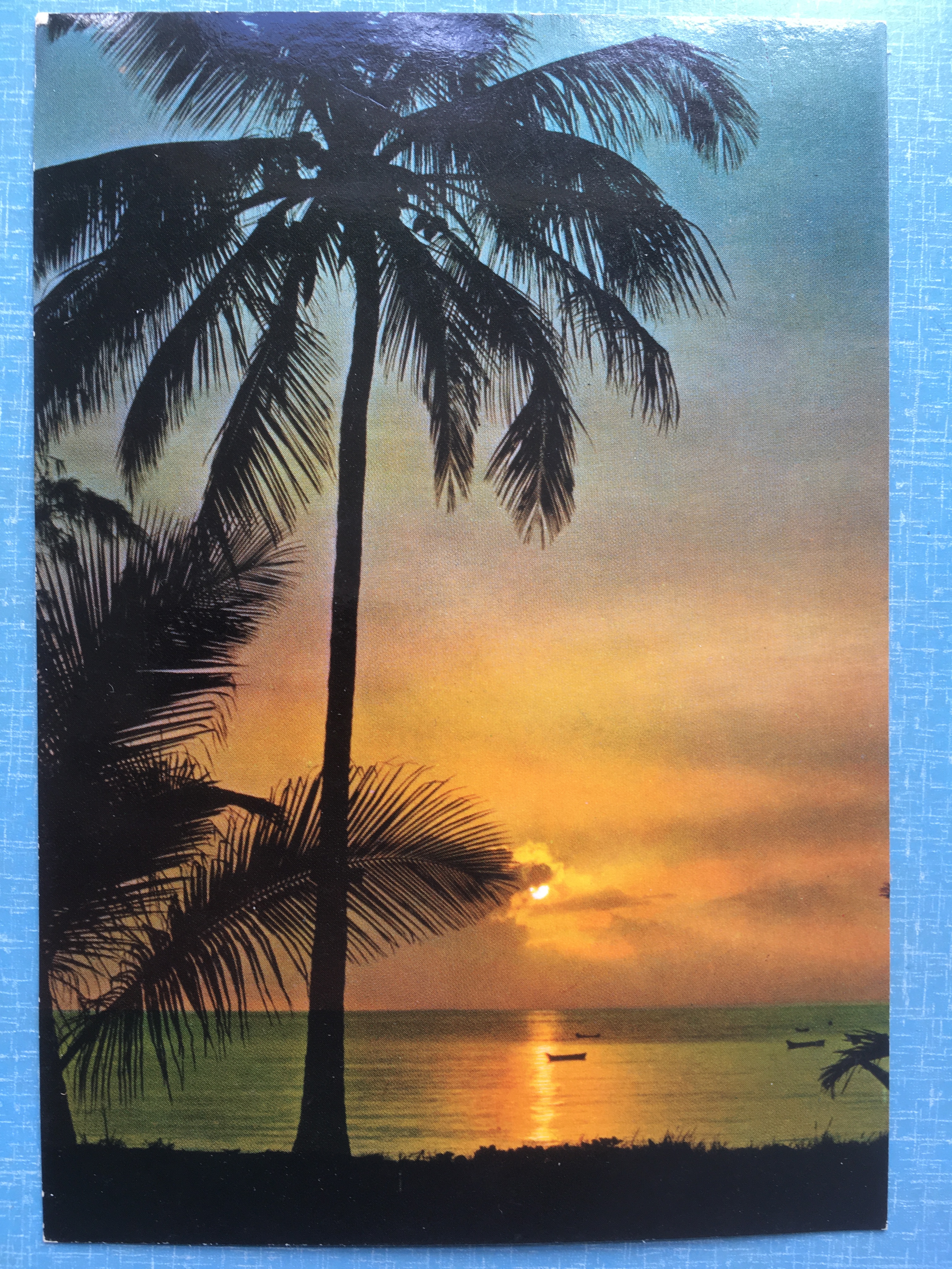 By the time you receive this the children will have left you to go to Winsley but I am sure they will have had a marvellous time in Littlehampton – thank you for your part in this and hope you have had no hitches. It seemed very quiet and strange at home without hordes of kids around. We have just returned from a 9 day holiday at the coast which we much enjoyed, especially the respite from large scale catering. We camped on a site right by the sea about 12 miles south of Mombasa, with the expected white sand, coconut palms and coral reef and found plenty to do; sunbathing, swimming and walking along the reef at low tide. Graham did some surfing with friends of ours who were also there and generally we had a nice relaxed time. The weather was good, warm but not too hot and the sea a very pleasant temperature unlike last August when it was as cold as England. We spent the afternoon in Mombasa yesterday while Graham successfully bought a car part that had been unobtainable both in Nairobi and England, but unfortunately our decision to leave coincided with President Kenyatta’s decision to enter which effectively put a stop to any traffic movement on Mombasa Island. However we were stopped in an interesting back road so were able to pass the one and a half hour wait quite easily by watching the water seller, the coffee stall and itinerant chapati and samosa man (a bit like the muffin man of old I should think) and their varied clientele – we also fried our sausages and had an excellent evening meal thus obviating the need to stop later !