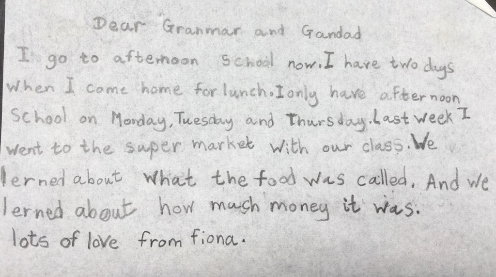 Juliet had a Speech Day at her school the other day and to her surprise heard her name called among the list of prizewinners. As she was wedged in the ranks of non-prize winning girls it was impossible for her to get out and collect her prize in time. She said she had never felt so embarassed in her life and went redder and redder until she was sure everyone was staring at her ! Poor Juliet ! As she said however it wasn’t her fault that her name had been accidentally omitted from the list of prizewinners. Helen, as usual, did well in her exams and was rewarded with a weekend away with her friend as she has written about to you. It was a real treat as staying at that kind of place is rather beyond our pocket. I think the only thing we heard from her for at least a day when she returned was all the super things she had to eat ! The food obviously made a great impression on her ! Fiona is full of beans as usual. She started a letter to you (headed Dear Grammar and Graded !) but didn’t finish it however we are all planning to write lots of letters during the holiday so you can confidently expect to hear all our news then !