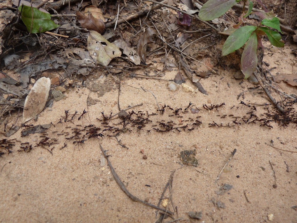 Today we found some safari ants or ‘siafu’ by a tree. They had made a nest and were carrying their eggs into it. Covering the mouths of the holes were the huge soldier ants who are triple the size of the ordinary ones. When we threw a stick or stone into the midst of them they seemed to become one single, moving mass of ants. They are a nuisance because they pinch you very hard with large pincers at their fore. Daddy poured boiling water on them and they are now on the move.