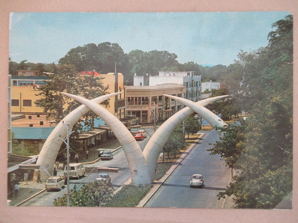 We left quite early on the morning of Saturday two weeks ago. The sun was only just appearing mistily above the rain clouds, struggling its way through and up into the sky. It was a fresh morning with the smell of rain and dew coming up from the earth. Most of our luggage was ready to be put into the van so we ate our breakfast first and packed afterwards. We had soon got the van organised and ourselves comfortable and so we set off on the long journey of about 300 miles to Mombasa. Soon we had passed through all the well-known areas of Dagoretti, Riara Road and Adams Arcade, all of which are very well-known to us. About an hour later we were in the industrial area of Nairobi which is a dirty, crowded area. There are lots of warehouses, scrap merchants and car-dealers and dirty roads with pieces of metal and paper littering the place. It was not a very pleasant area but soon we were passed it and heading out into the open plains. We passed an enormous Drive-In screen, some large Firestone factories and went over a bridge. Close to the road was the railway line that would be in sight of the road nearly all the way to Mombasa. Past the railway, in the distance, we could see Nairobi Game Park fences and large herds of skinny, hump-backed Maasai cattle roaming on the sparse brown grass searching for food. Occasionally we would see a few lone wildebeeste or kongoni or a herd of small deer. The road was very straight and smooth and the countryside rather boring with its rolling brown plains, few scrawny acacia trees and sometimes brightly coloured birds twittering to themselves. It was obvious there was very little water because of the brown grass and dead cows and goats littering the ground. From Nairobi to Hunters Lodge we counted about 70 dead animals. As we continued the landscape began to change. We passed the Lukenya Hills as I’ve no doubt you have heard about and on into hilly land. Here the grass was no better but there were more trees. By this time it was beginning to get hot although we had passed through a shower of rain. We decided to stop at Hunters Lodge, a pleasant hotel about 100 miles from Nairobi. This was so we could have a drink and Daddy wanted to fix the van because something was wrong. The Lodge was set by a river that ran through a small lake. It was in a lovely cool, green place with doves, sunbirds and peacocks showing themselves off. There was a bar and seats to sit on outside, displays of shells, stamps and rocks from Kenya, and a bridge across the still lake from where we could see hundreds of silver fish. We stopped here for quite a long while for Daddy to mend the van and then drove on. We had only gone a little way when Daddy turned the van around and said “we are going back”. So back we went, all the way to Nairobi. Apparently the van could stop at any minute and it would be best to go back 100 miles to Nairobi rather than try 200 miles to Mombasa. We were very disappointed but on the way home we stopped at the station to enquire about trains to Mombasa. One train (passenger) left Nairobi each day at 6pm and got to Mombasa at 8:30am the next morning. We couldn’t go that night because it was already 4:30pm so we bought tickets for the next day train. It was arranged that Mummy would take us three down on the train while Daddy stayed to do the van and would follow on later. We spent all Sunday morning getting our rucksacks ready because we would have to get a taxi or walk to the bus-stop then get a bus to the ferry and walk the rest of the way. We were driven to the station by our friends Tom & Myrtle Stevenson and their three children, and us and another person totalling ten people altogether in an estate car ! The station was very busy with steam trains shunting up and down and the long Mombasa train waiting. There was music playing to add to the noise. Unlike English stations, we had to go to a board and look on a list where it would tell us our carriage number. We were in a second class carriage. We got in long before the train was to go and explored our compartment. We had a room of our own that had space for four people. It had a small sink with a let-down table over it. At the windows were wooden shutters, a glass window and a mosquito net window. Our compartment was next to the toilet which was convenient. At 6:30pm our train left Nairobi and by the time we got to the Firestone factories it was getting dark. About half an hour later a man came round with a glockenspiel on which he played a tune – this meant that the buffet car was now serving supper. We had brought sandwiches so we ate those. Later a man whom we call the ‘blankiti’ man came. We called him this because he asked us in Swahili do we want any blankets and blanket in Swahili is blankiti. We ordered 4 blankets and he entered carrying four huge sacks. He showed us how to raise the backs of the seats to form bunk beds. On the edge of the top bunks were kind of nets to stop us from rolling out. In the sacks were two lovely soft sheets, two thick warm blankets, two pillows and a clean towel. By now it was dark and we were eager to go to bed. Fiona and Mummy slept on the lower bunks while Helen and I slept on top. We were soon asleep in our comfortable beds (we didn’t use all the blankets!) and I slept right through the night waking occasionally to pull up the sheets. We all awoke at dawn which was about 6:30am and got our beds put away. The blankiti man came and collected our blankets and took them away. We were charged 10/- for each blanket pack so Mummy said we would have biscuits and bananas for breakfast instead of going to the buffet car. The landscape around us was quite different from the night before scenes. It was very dense bush that was incredibly green and lush but the strange thing was that there was no grass, or practically none. The ground was very hard packed red soil that looked as if it couldn’t grow anything. There were only a few baobabs to be seen as now we ha