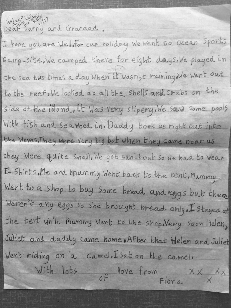Letter from Fiona to Nanny & Grandad 16 Dec 1976 –