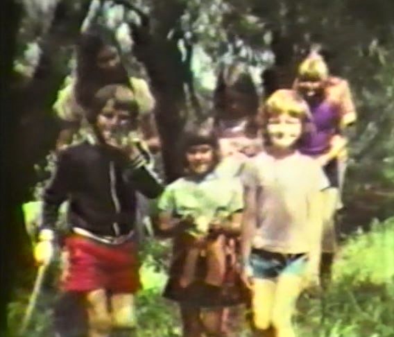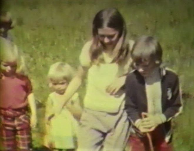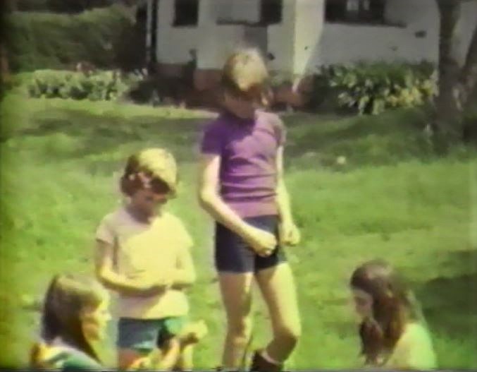Stills from our ciné film of our trip to the marsh. Top left: Helen with Jane & Catherine Stevenson and Juliet in our front garden getting ready to leave. Top right: at the front of the photo Alastair and Jane Stevenson with Fiona in the middle, behind Juliet, Helen and Catherine Stevenson, and behind her, Judy, on our way to the marsh. Middle right: Graham on the path to the marsh. Bottom right: the fun group activity of ‘rocking’ the floating marsh turf by stamping and swaying in unison on it, taking great care not to get a leg in! Bottom left: Victoria Lewis with Juliet and Alastair. We remember Alastair did get a bit wet !